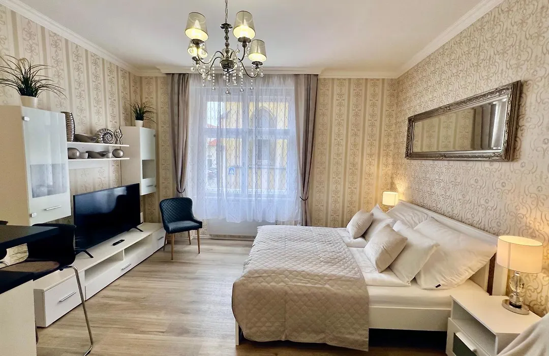 Das 40 m² große Apartment Romance In The Old Town Prag befindet sich im Viertel Praha 01 von Prag, in einer Entfernung von 17 Minuten zu Fuß vom Palais Lobkowitz.
